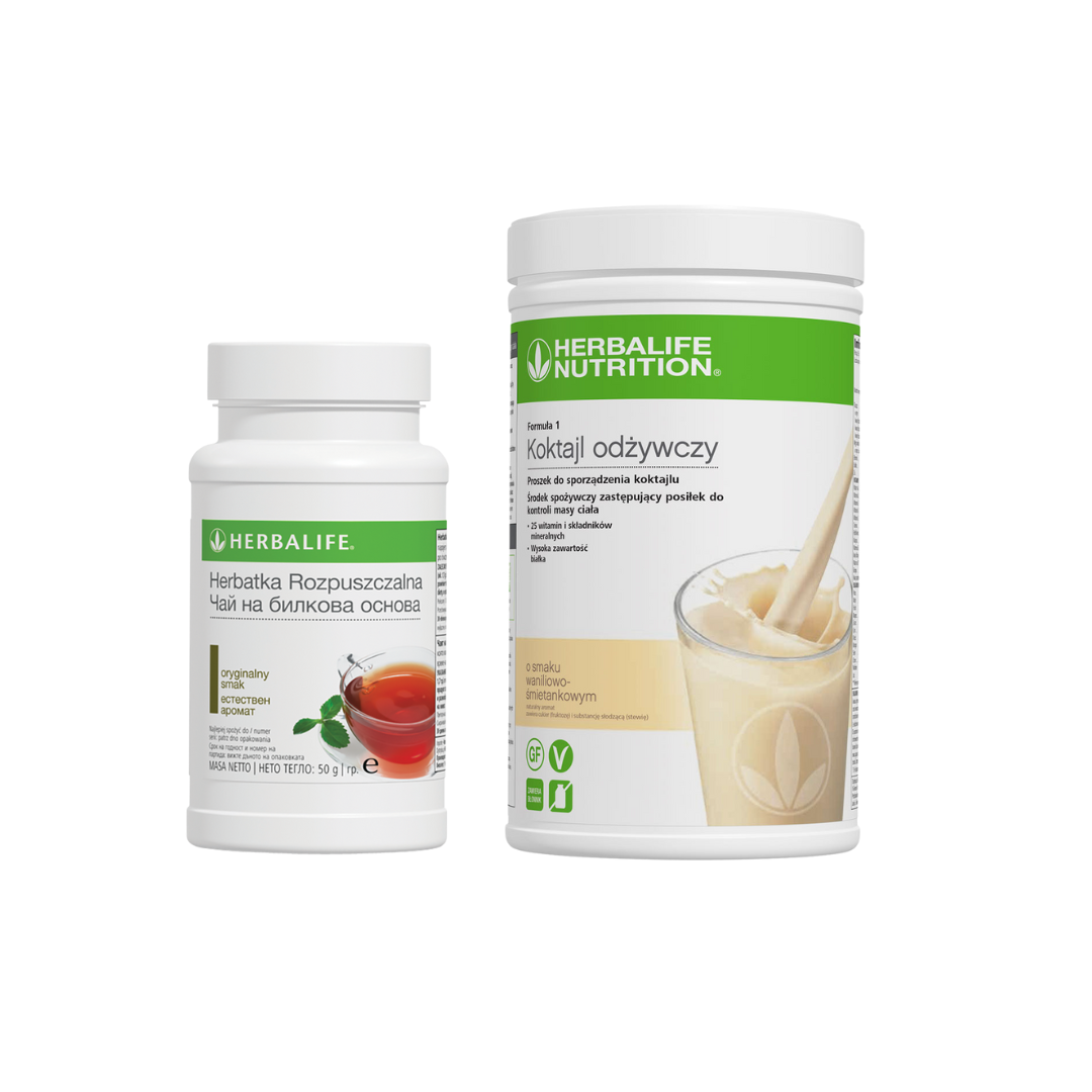 Zestaw Koktajl Herbalife Formuła 1 Koktajl odżywczy o smaku waniliowo-śmietankowym 780 g + herbatka rozpuszczalna 50g